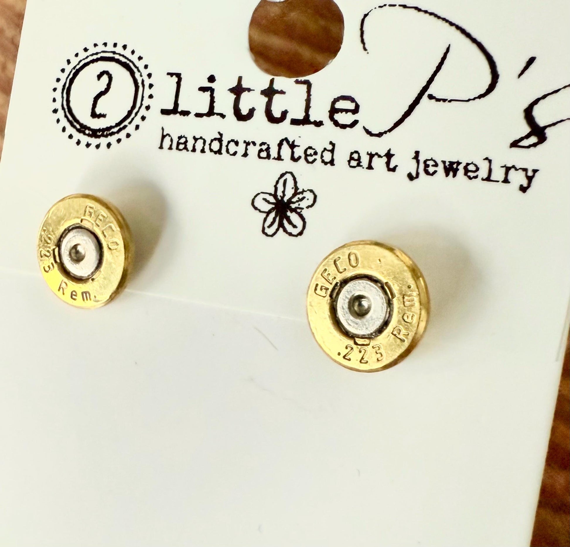 Recycled .223 Bullet Stud Earrings | Brass Shell Casing Jewelry | Handcrafted by 2 Little P’s
